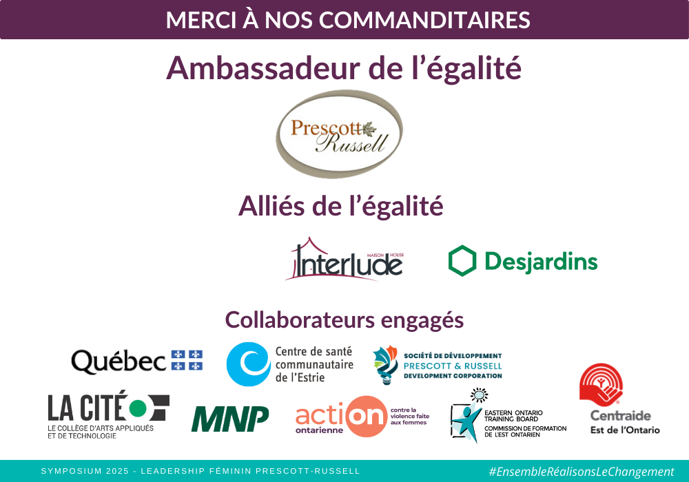 Les propos inspirants du panel ont mené à une réflexion collective par rapport à l’égalité des genres. Retour en image sur l’édition 2023 du Symposium tenu sous le thème L’égalité, c’est ensemble qu’on va y arriver! Une discussion ouverte a été entamée sur les inégalités de genre et ses conséquences pour les femmes et les filles de Prescott-Russell.