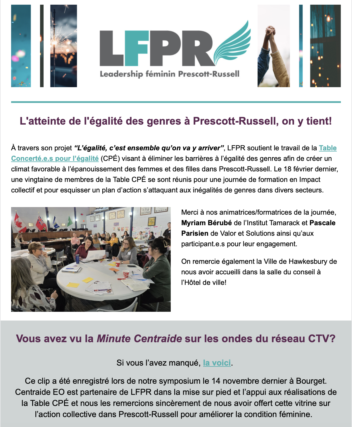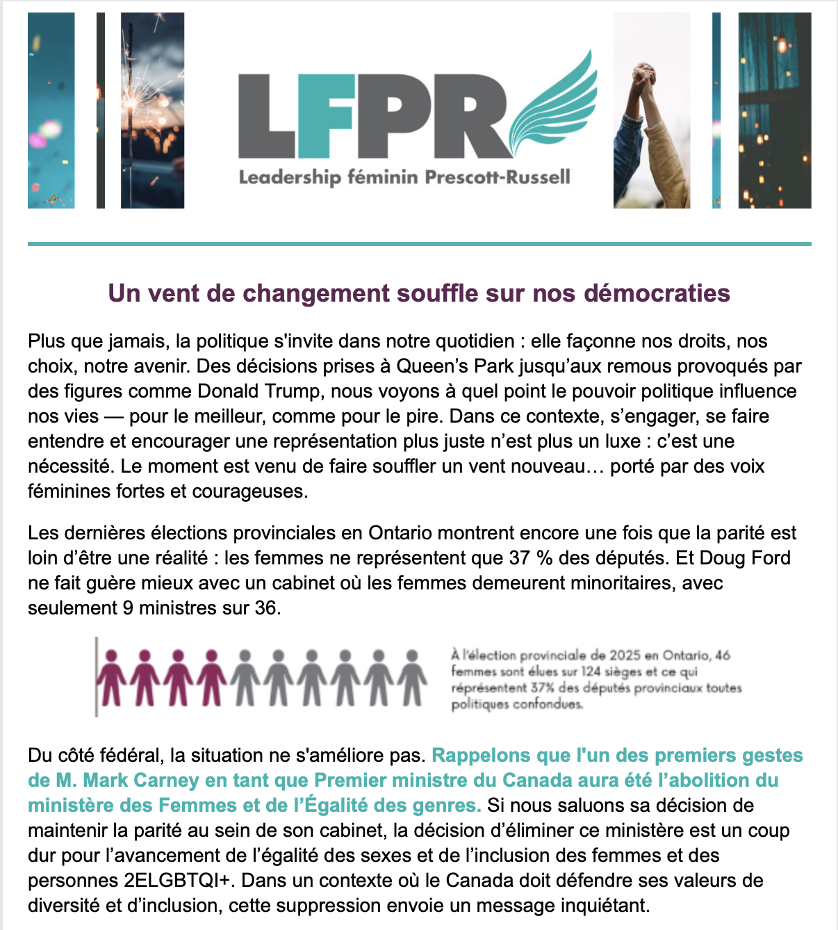 événements et initiatives de Leadership féminin Prescott-Russell.