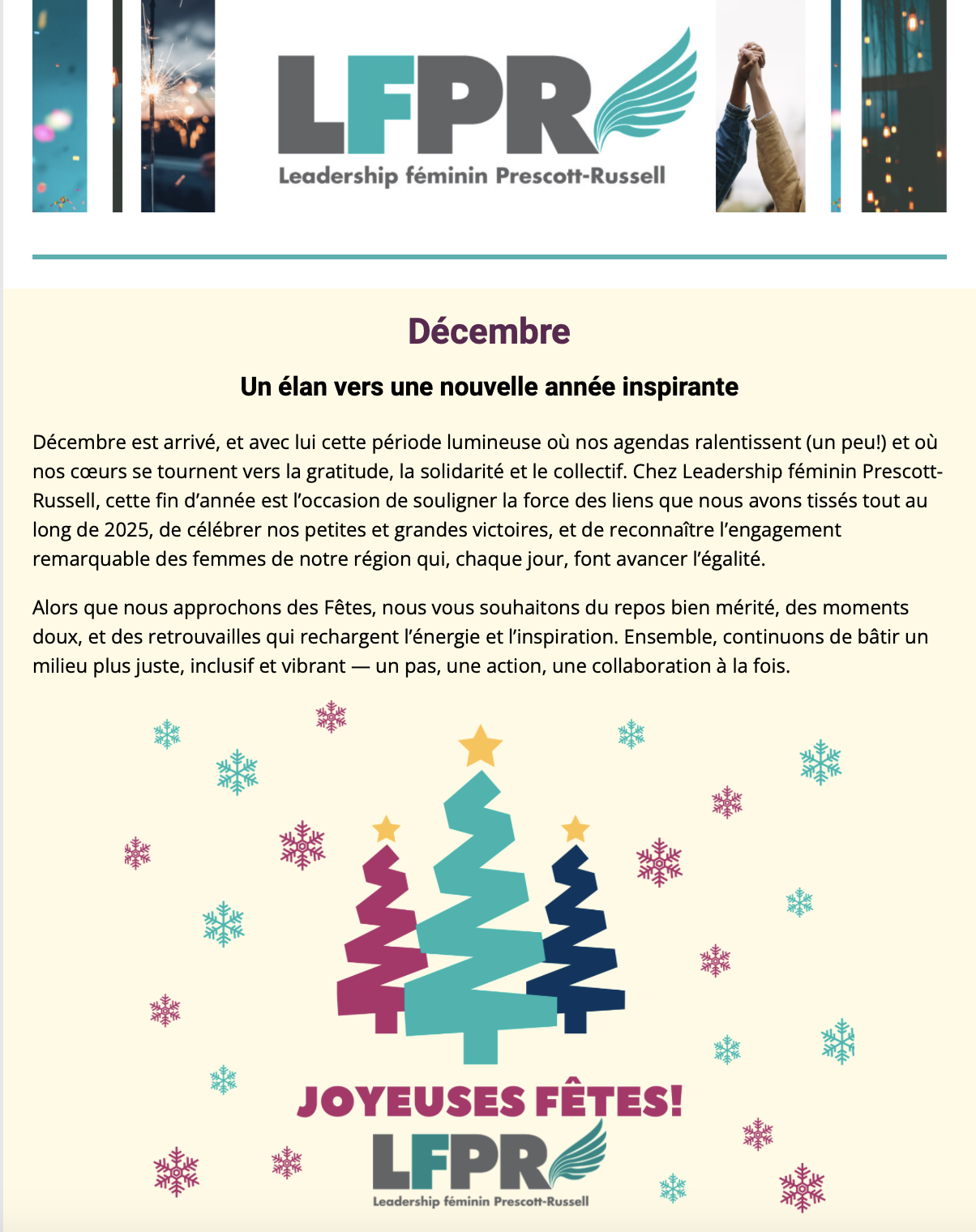 Restez connectés et informés! Abonnez-vous à notre infolettre pour recevoir directement les nouvelles, événements et initiatives de Leadership féminin Prescott-Russell. Découvrez aussi nos archives pour tout savoir.